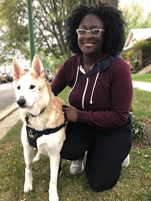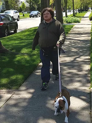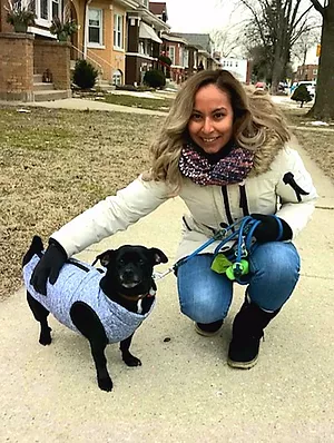 Natalie is from Oak Park and is a lifelong pet owner and lover, currently with a Frenchie named Indigo and a kitty cat sibling. She has been working in web development/design primarily for start-up design firms in the city, and recently branched out into freelance work (check out her website). Her freelance keeps her busy in the evenings/weekends, and she was looking for something that would compliment that work, that would also allow her to get outside and spend time with animals. Her references spoke both to her charismatic personality, approachability, and her love for pets, so we've been glad to have her on the team!