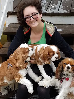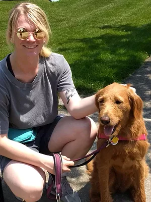 Suzy likes to call herself a professional Man’s Best Friend’s Best Friend. She’s walked dogs of all breeds, ages, and sizes all over the Chicagoland area and has loved every last one of them. She worked for over 5 years at two of Chicago's largest and best known dog walking companies and brought her vast experience and insight to Team S'wooft after moving to the far northwest side. She has two adorable cats, Sam and Max, ages 1. When she’s not cavorting with canines, you can catch Suzy playing in bands, writing stories, and, more recently, wrestling under the (very apt) ring name Suzy the Wrestler.